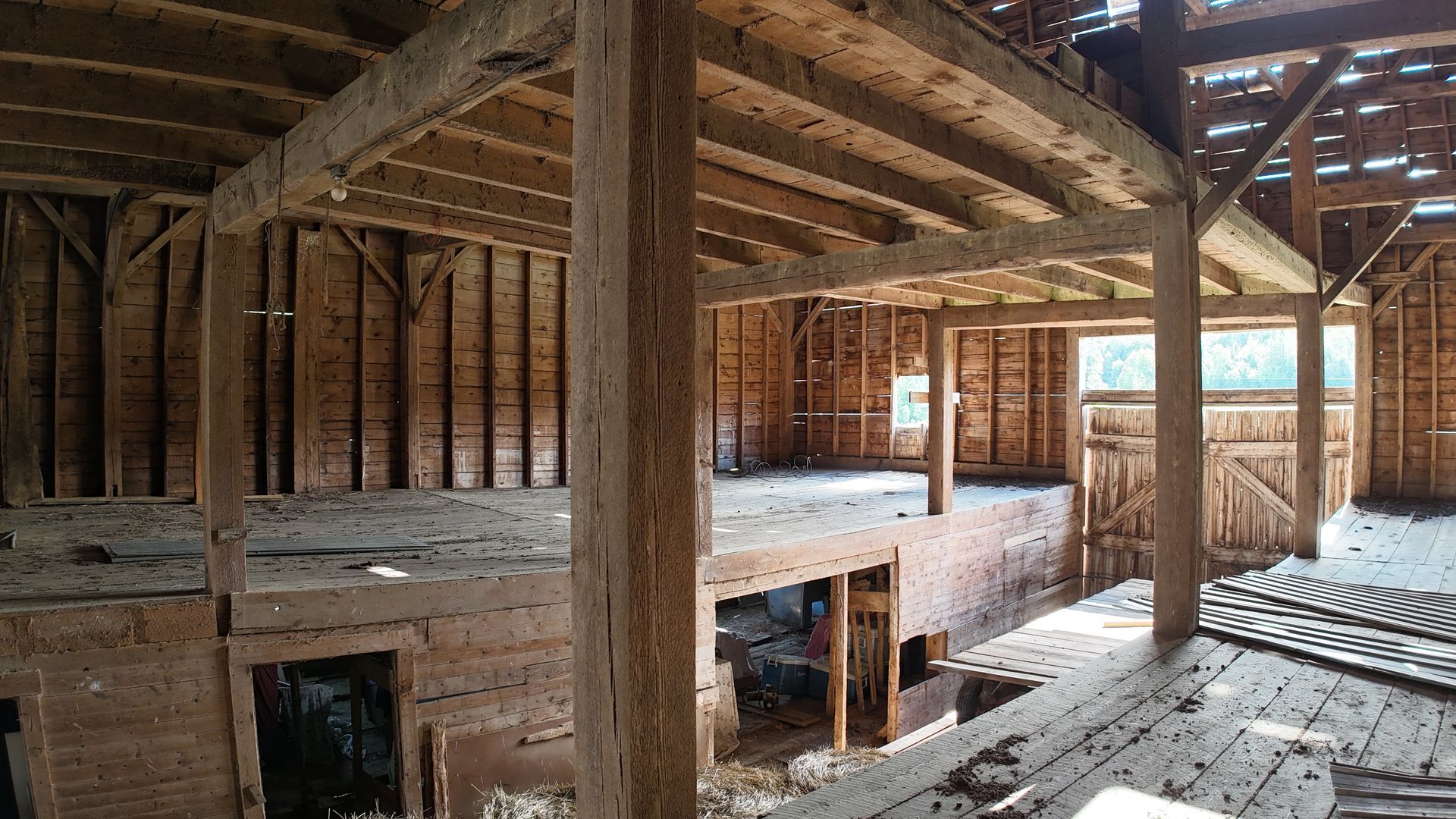 The barn's versatile design and ample space make it ideal for a variety of uses, from commercial ventures to residential living. Its towering height and open layout create a dramatic and inspiring atmosphere.