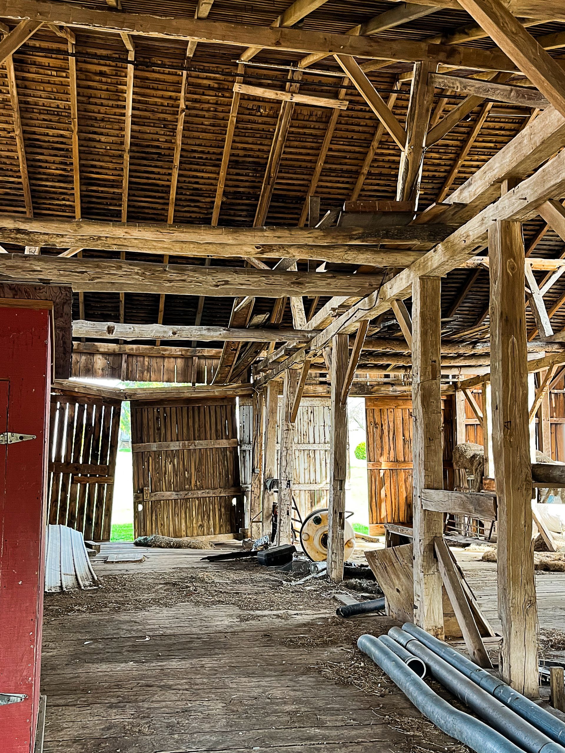 With a 61x62 foot footprint, this square barn provides the potential for a stunning square event space or an easily adapted heritage home. The soaring 15-foot ceilings and unique interior space provide a dramatic and versatile architectural opportunity.