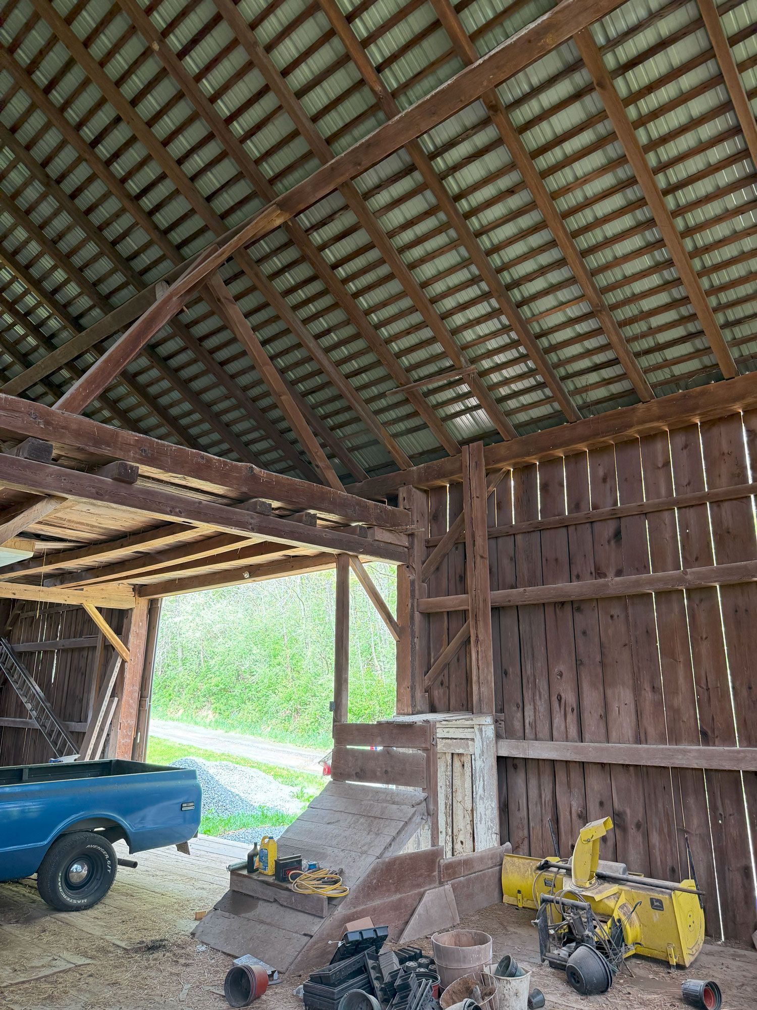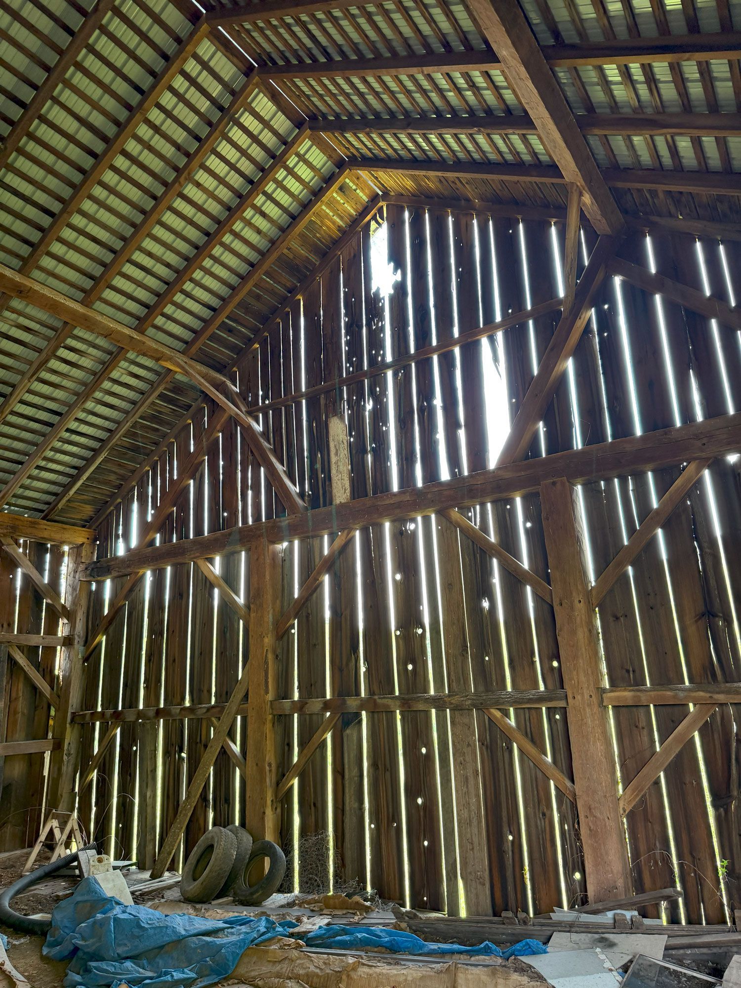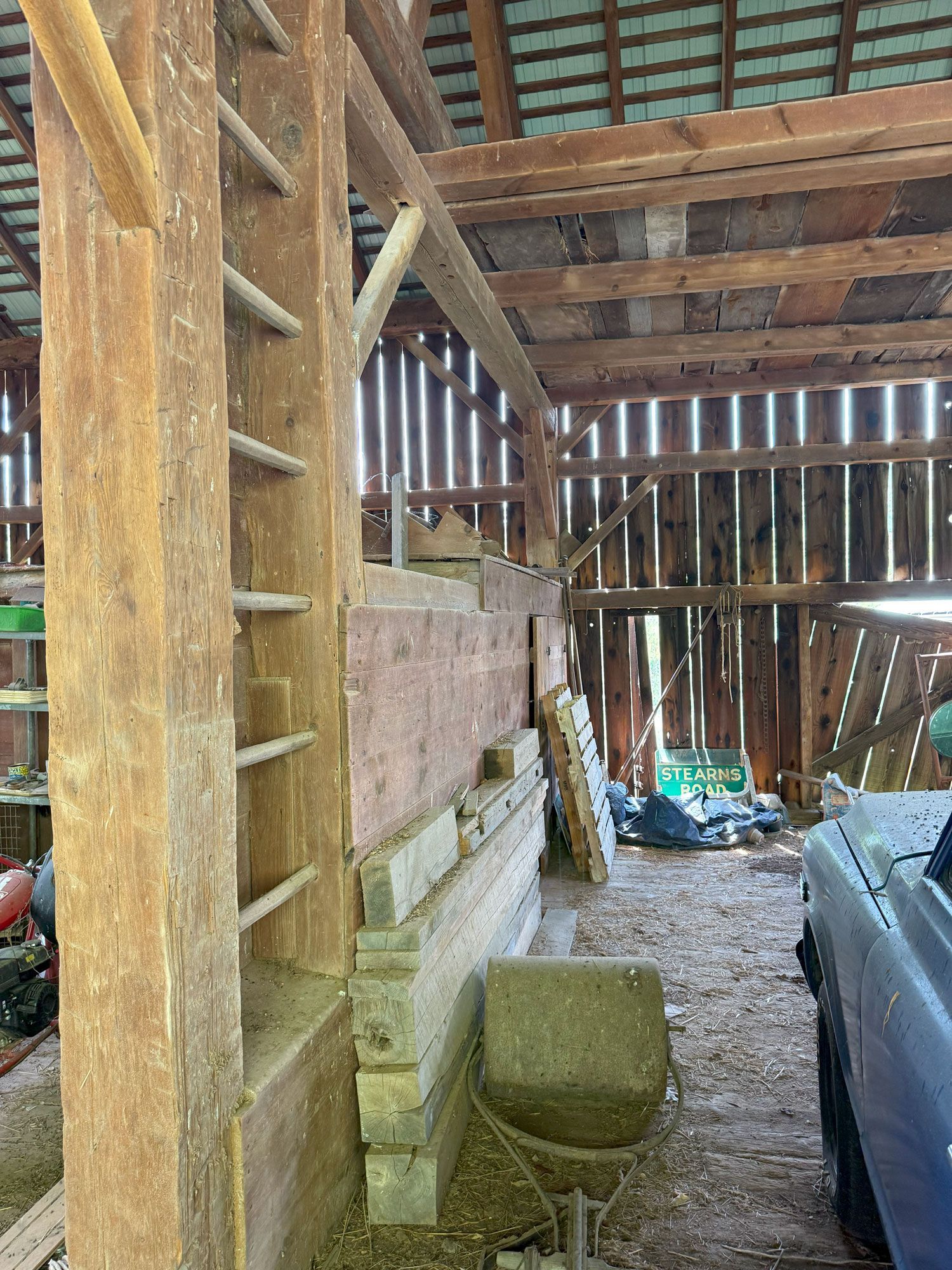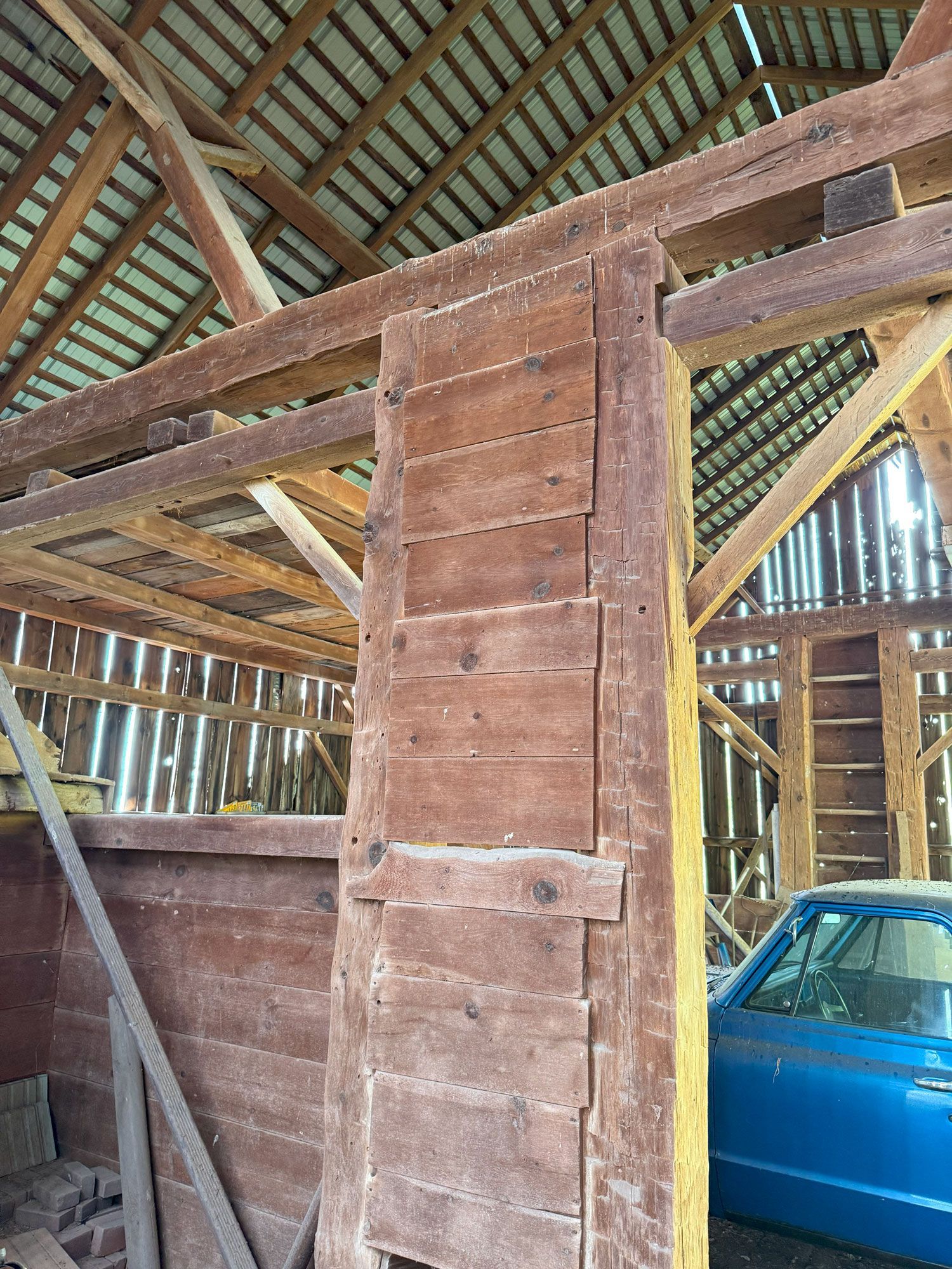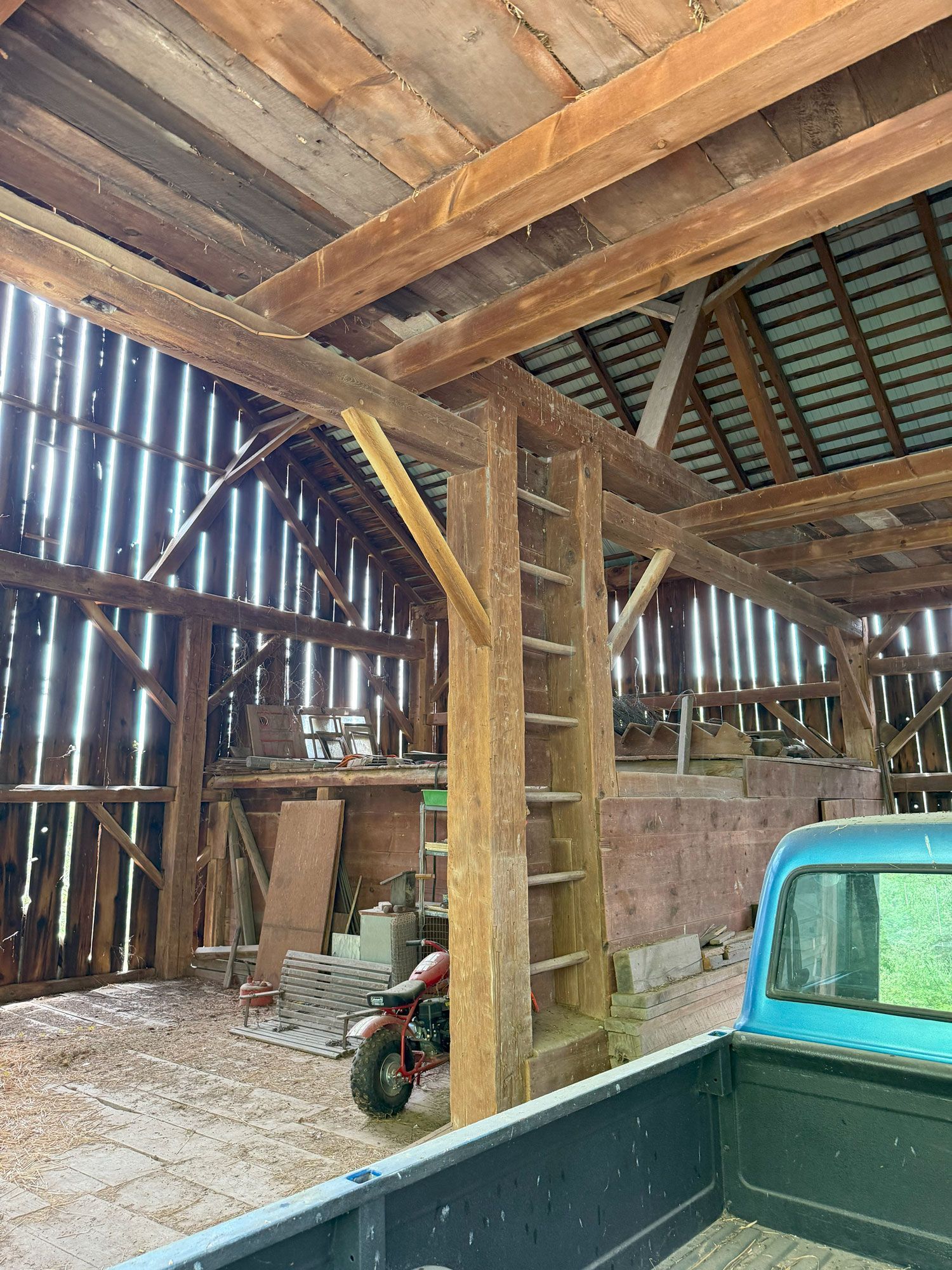 Truly unique in how robust this frame is. The main timbers in the frame measure 11"x 11" and 12"x 12". Once restored, the warm pine timbers will warm a home to its finest. The central space is only interrupted by two big timber ladders and the rest is open for the design of your project. This barn also has an addition that, as an optional space that can be added anywhere around the perimeter of the barn, can serve so many creative purposes. All the more reason to give this barn frame a good look.