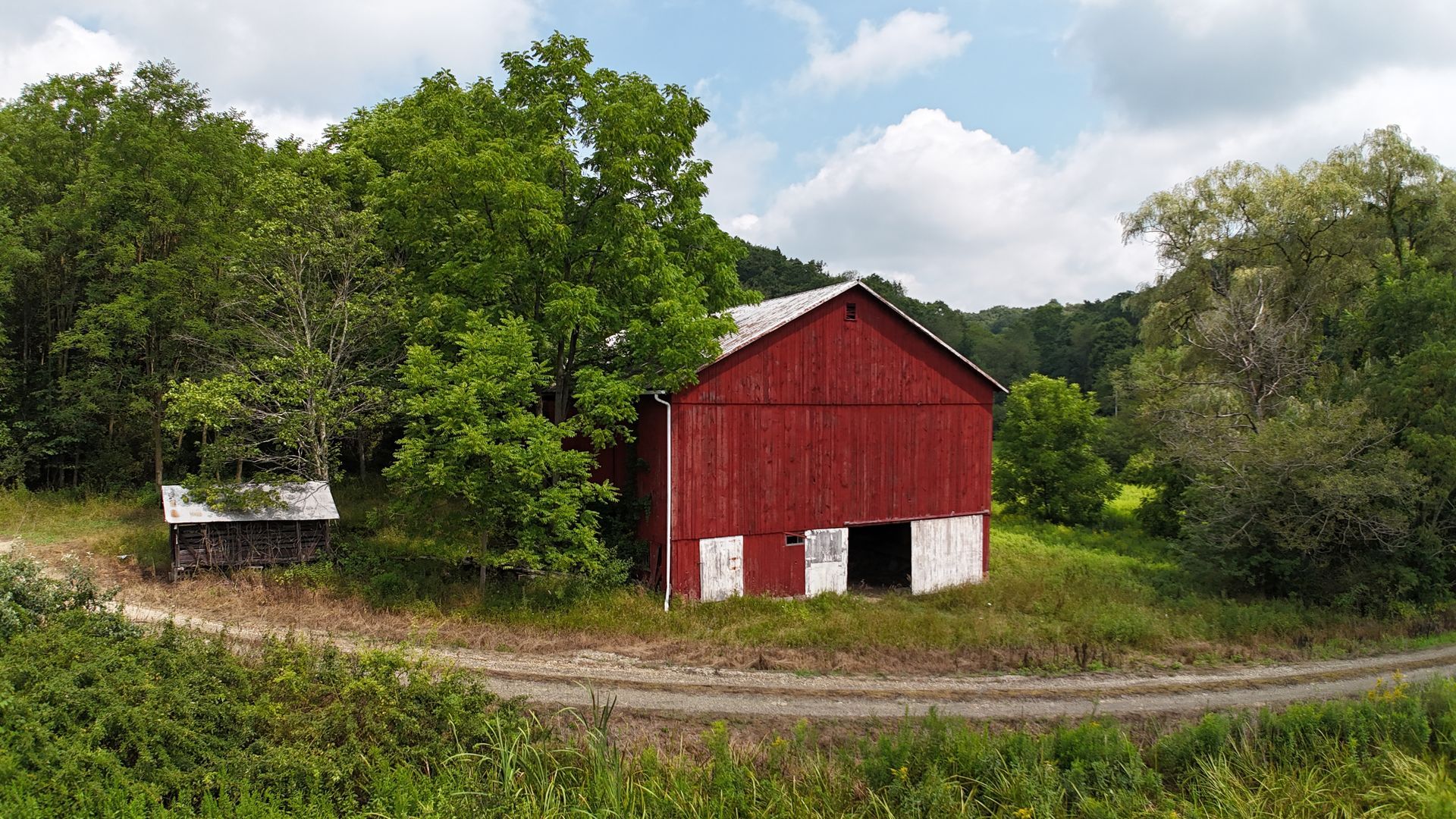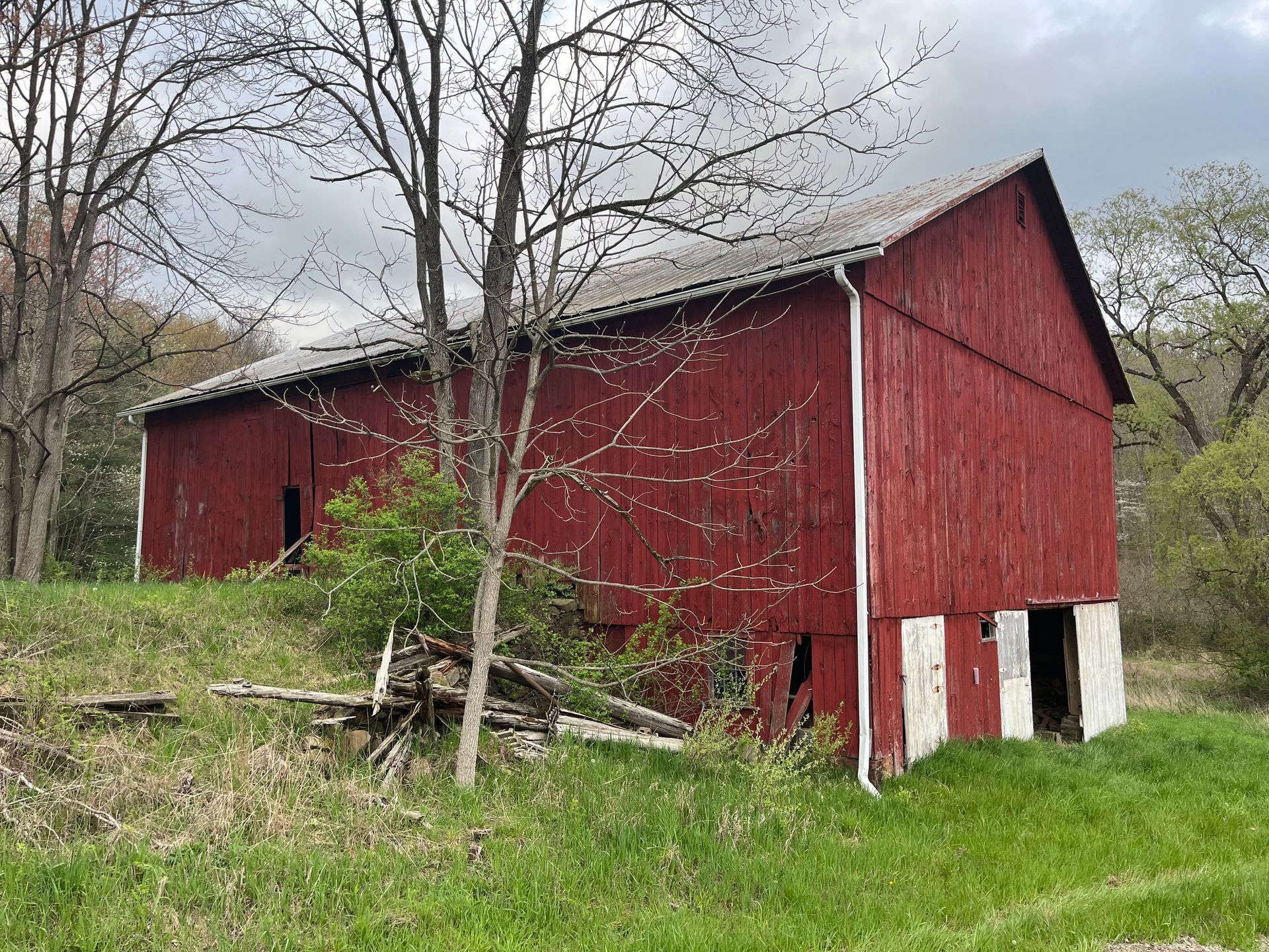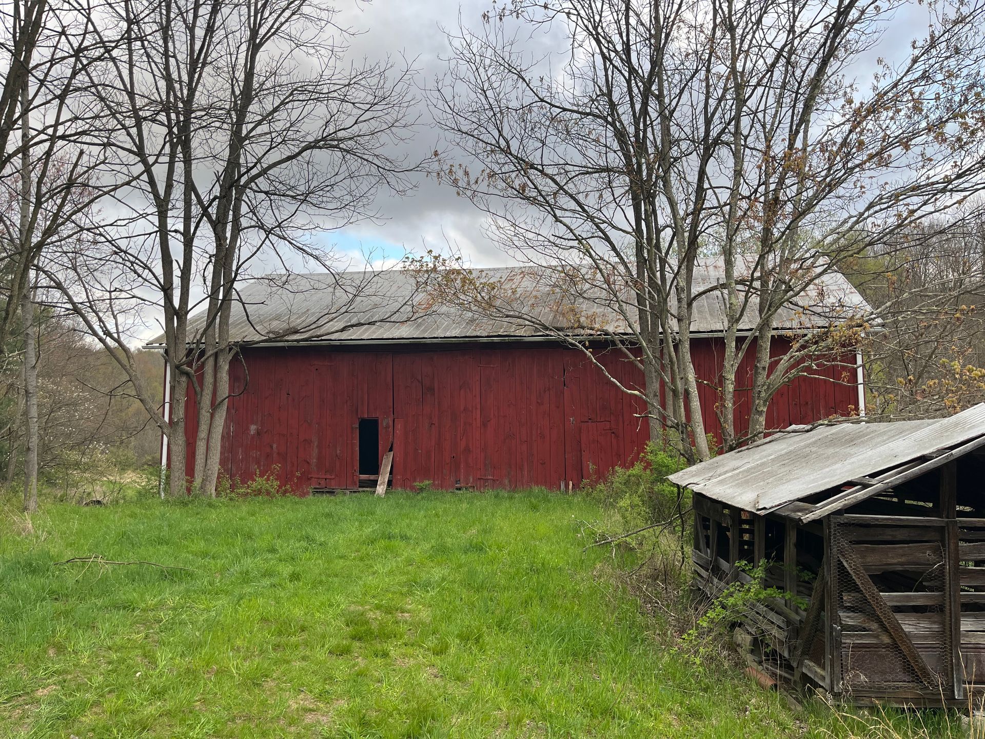 Its robust construction, featuring hand-hewn oak timbers and a classic four-bent, three-bay design, offers a solid foundation for architectural transformation. The barn has a spacious interior with towering ceilings and exposed timber framing. With its impressive scale and well-preserved structure, this barn has the potential to showcase its rich historic character in the form of a home reconstruction, multi-function venue, or event space.