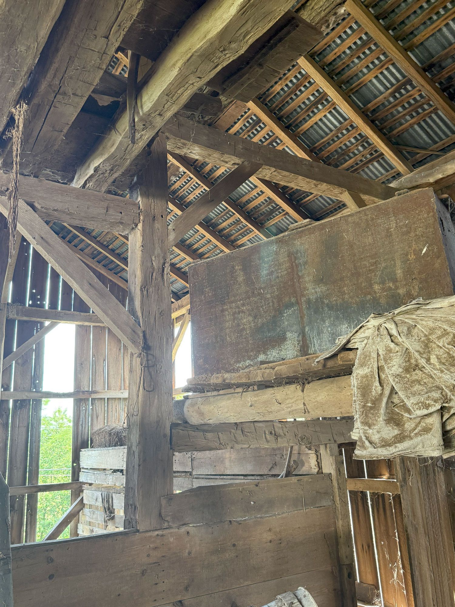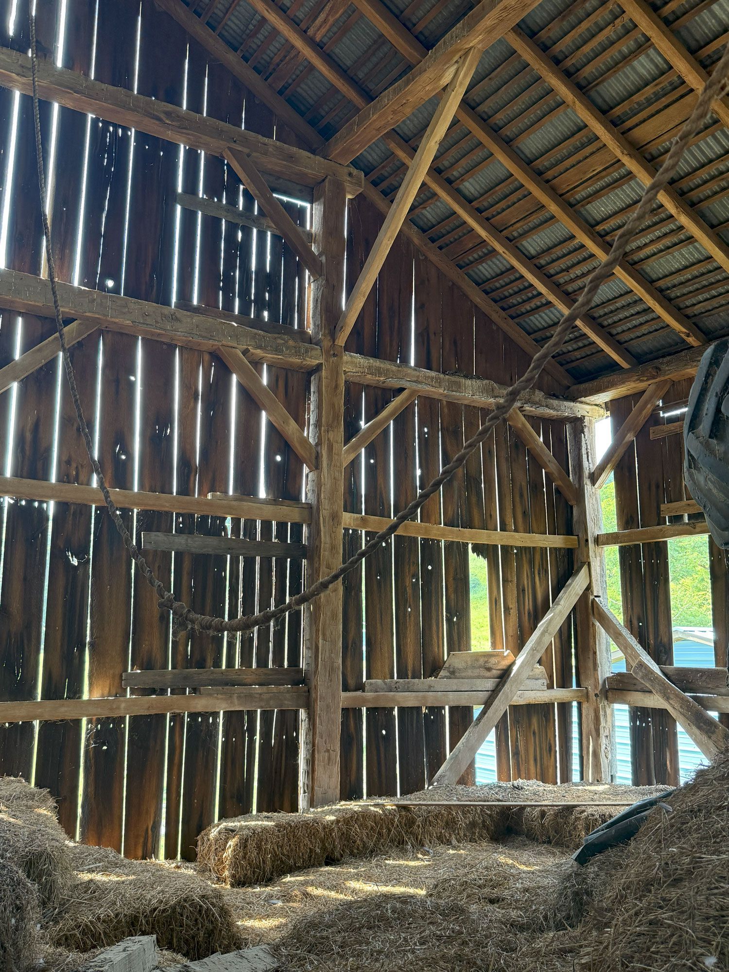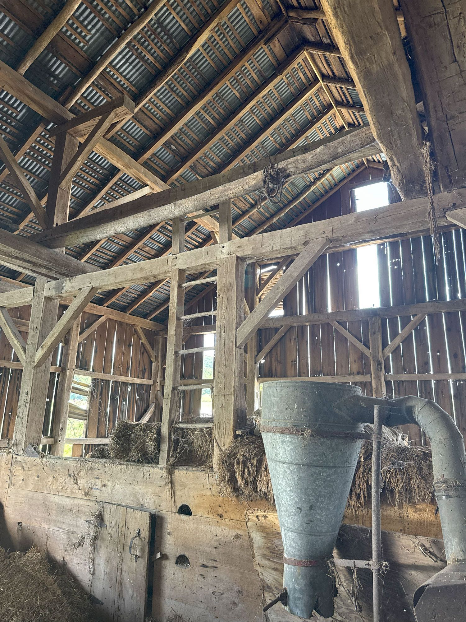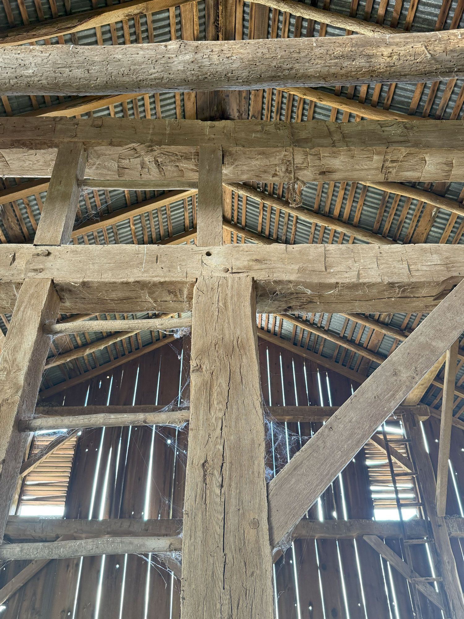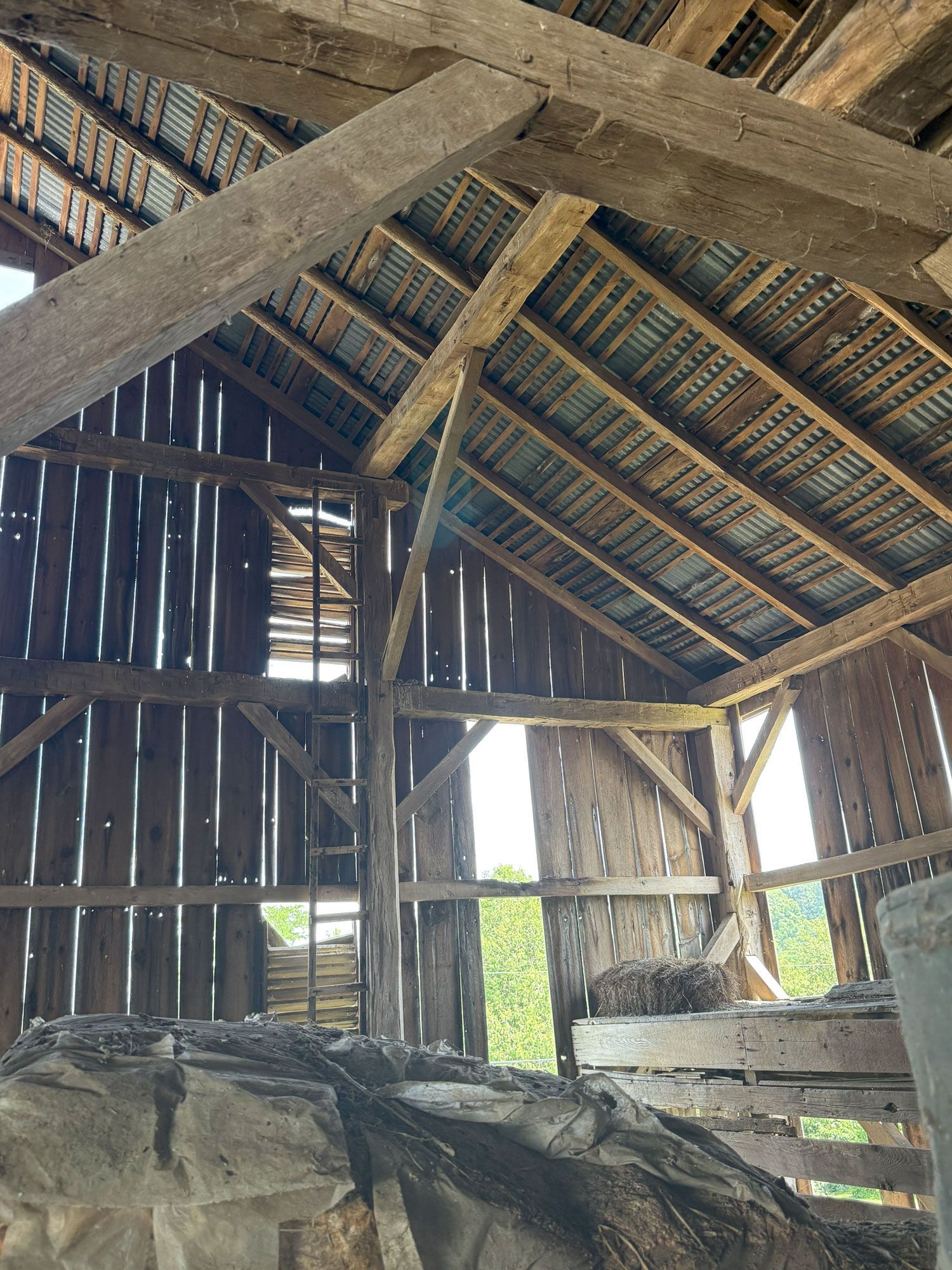Holy cow what a beautiful barn frame. This frame has all the traditional look and feel a person could want. It is also beautifully engineered for any heavy snow load if a northern location is in the mix. Double ties accent the frame system and make for great second floor or loft opportunities. Still a working barn, it will be cleaned out and dismantled late 2025.