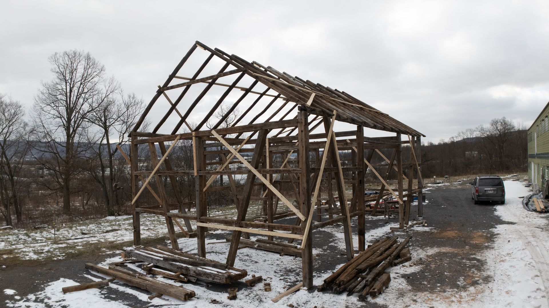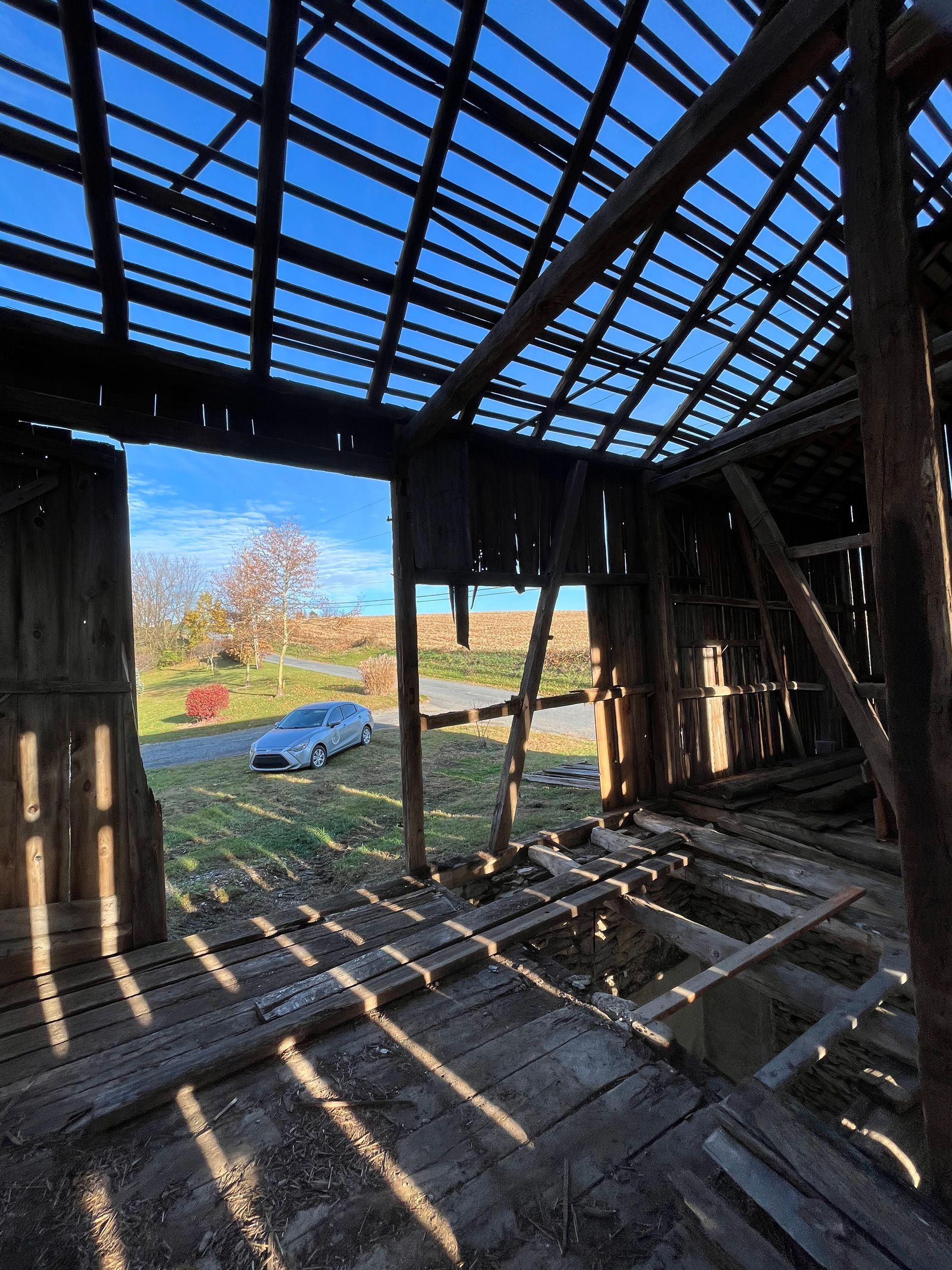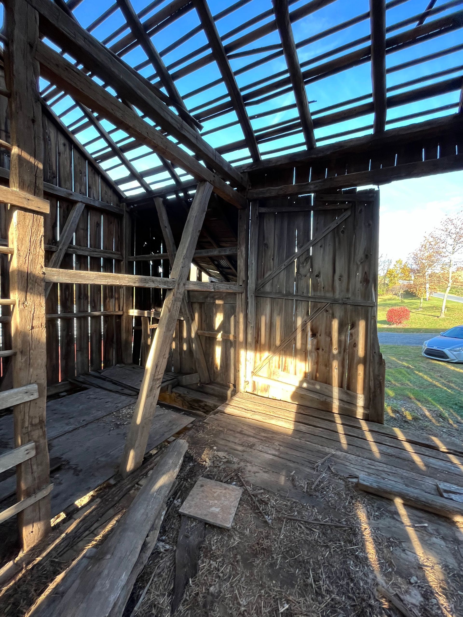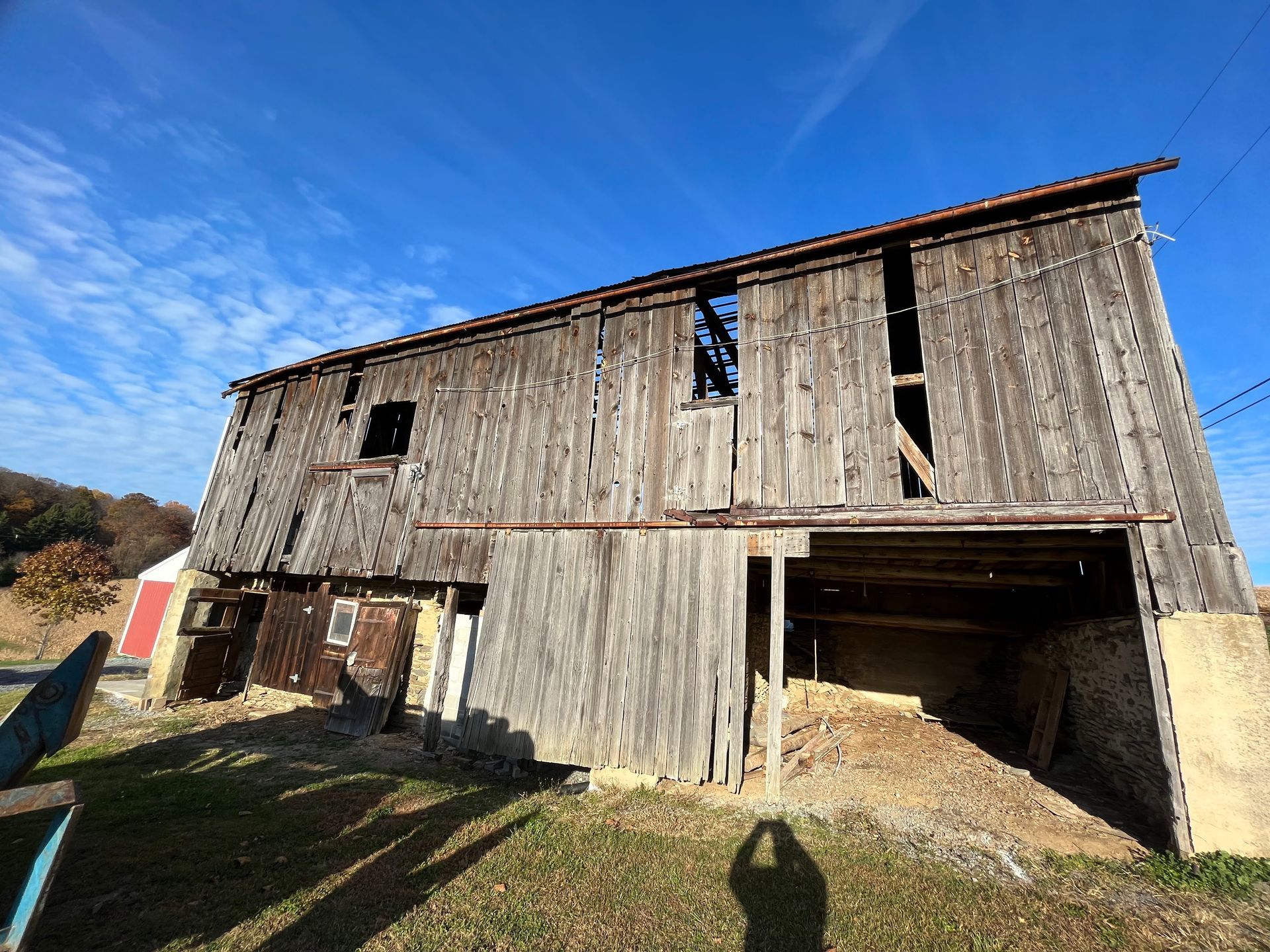 This rectangular barn, circa 1900, is a solid and impressive example of the robust construction techniques of its era. Located in Howard, Pennsylvania, a region with a rich history of lumbering, the barn features hand-hewn beams of mixed oak and chestnut, joined together with double tight ties for added strength and durability.