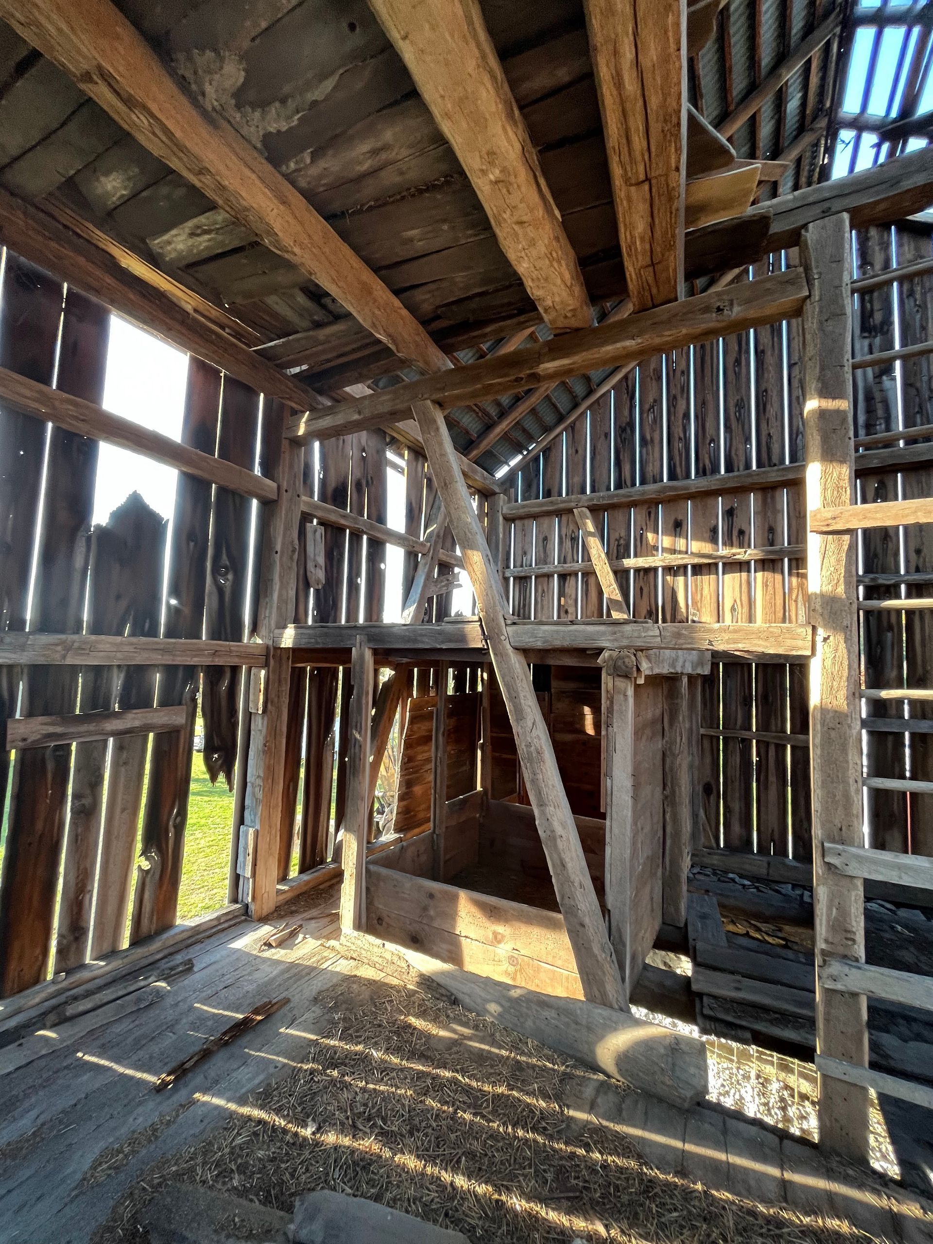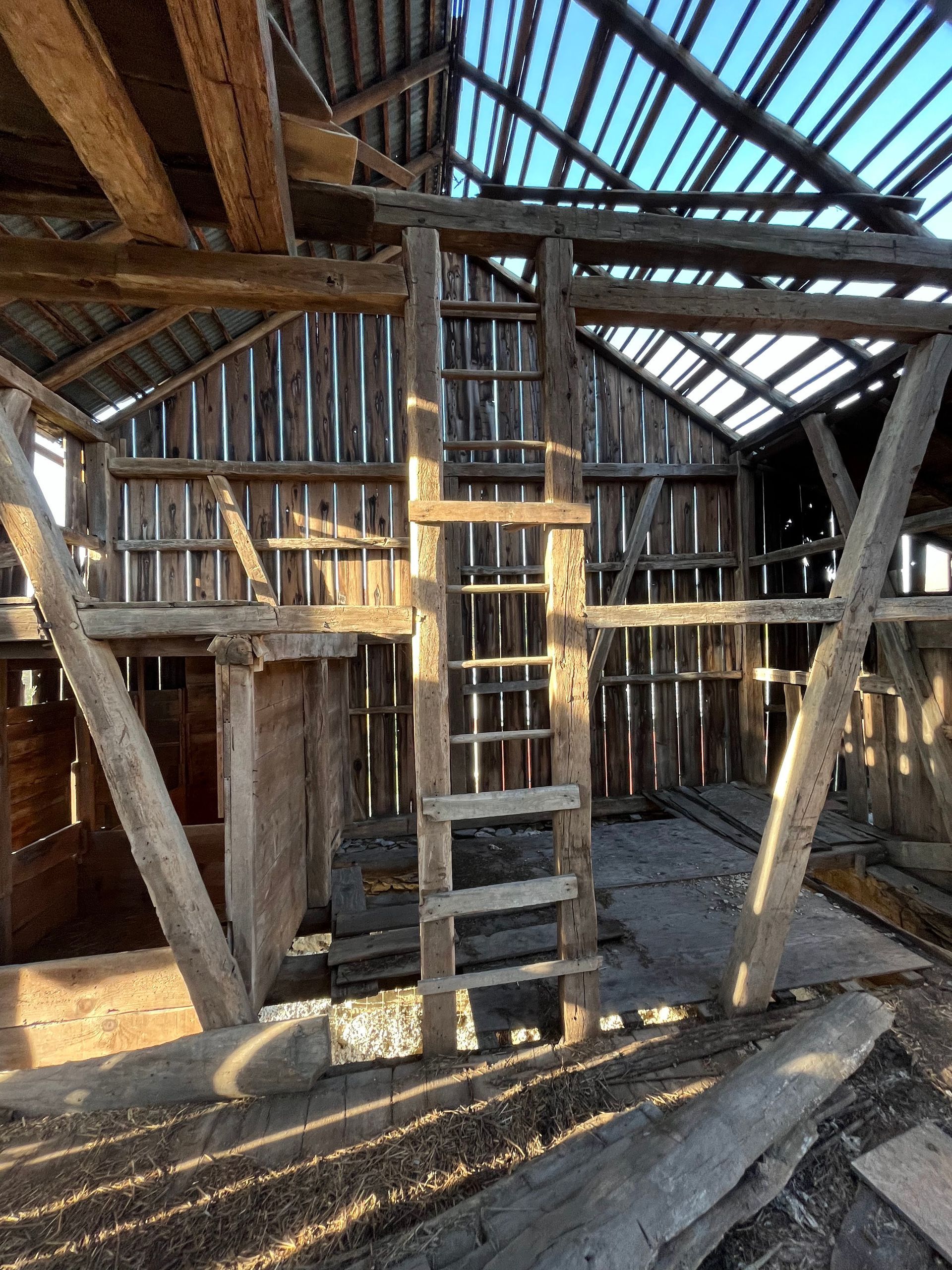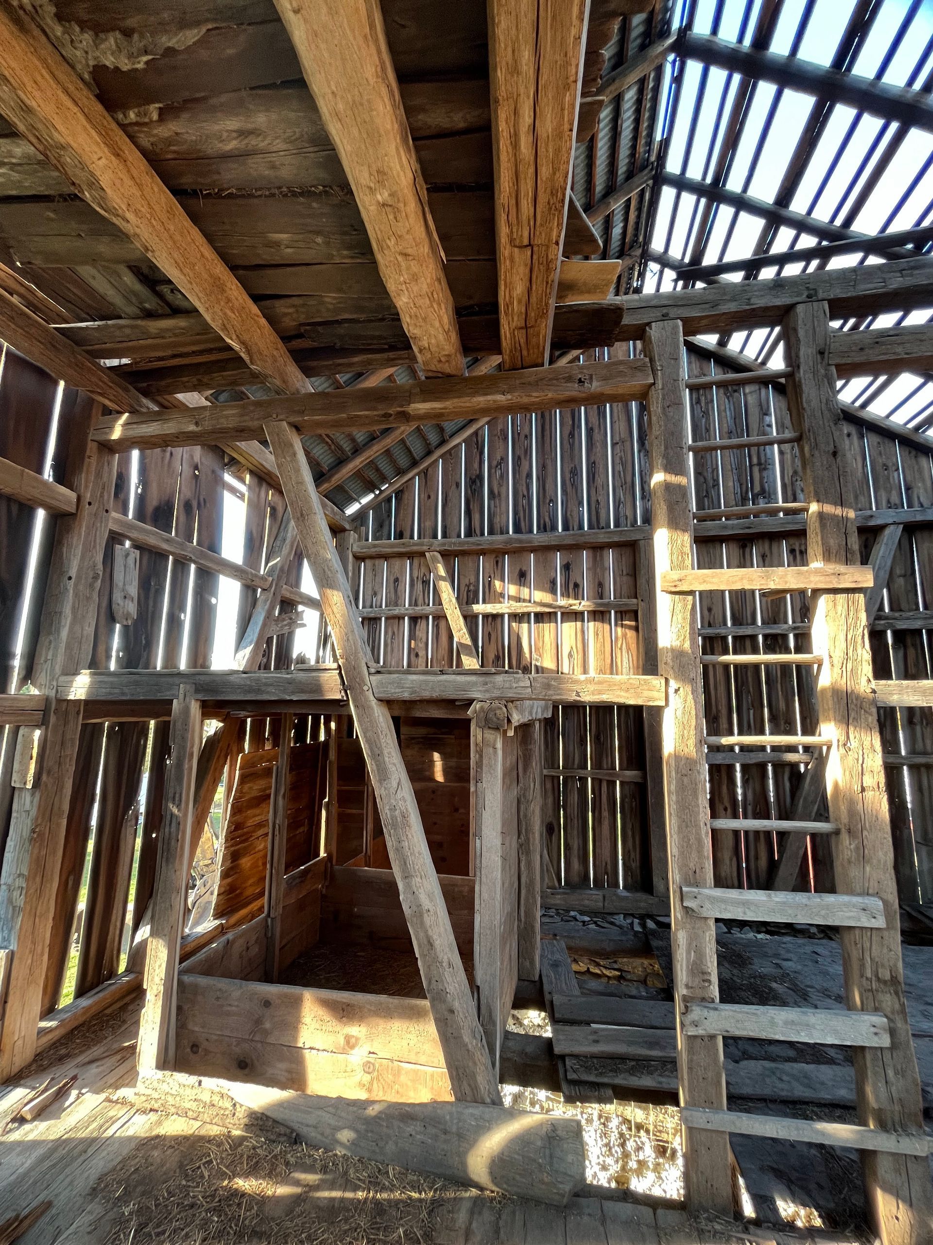 Double tight ties in the bents are done for added strength and durability. It is not uncommon for a barn to hold 50-100 tons of hay on the upper floor. Everything about a barn and its construction is designed around these needs.