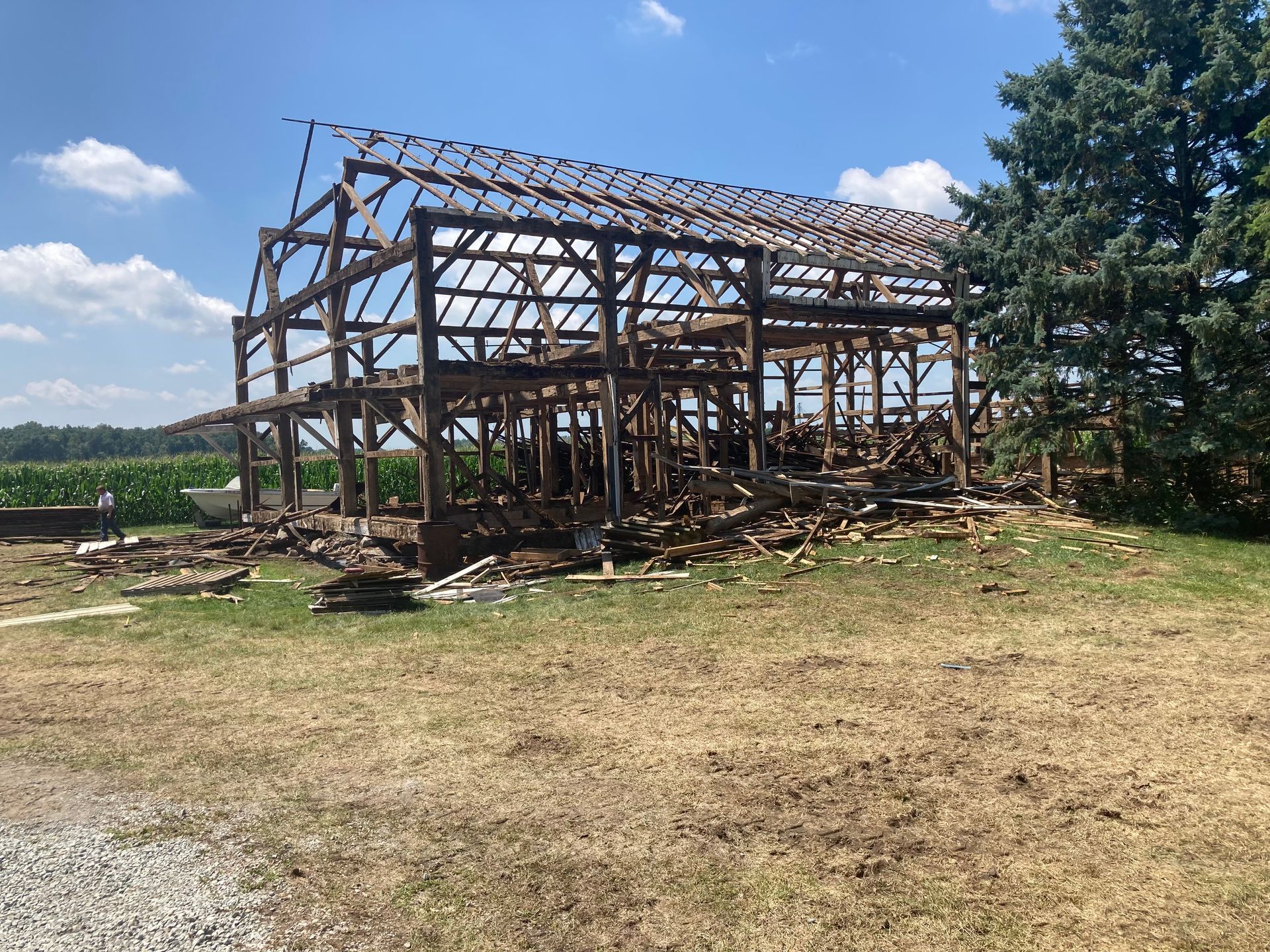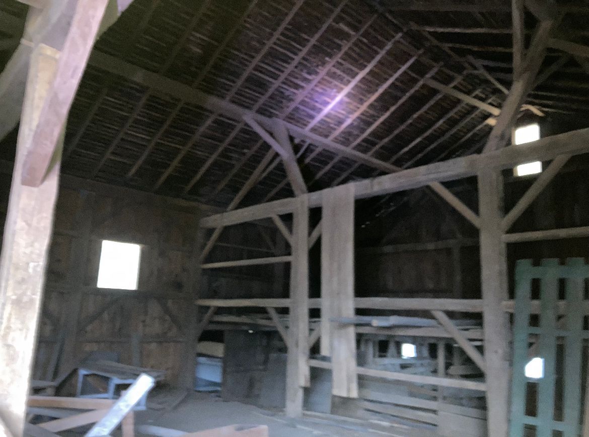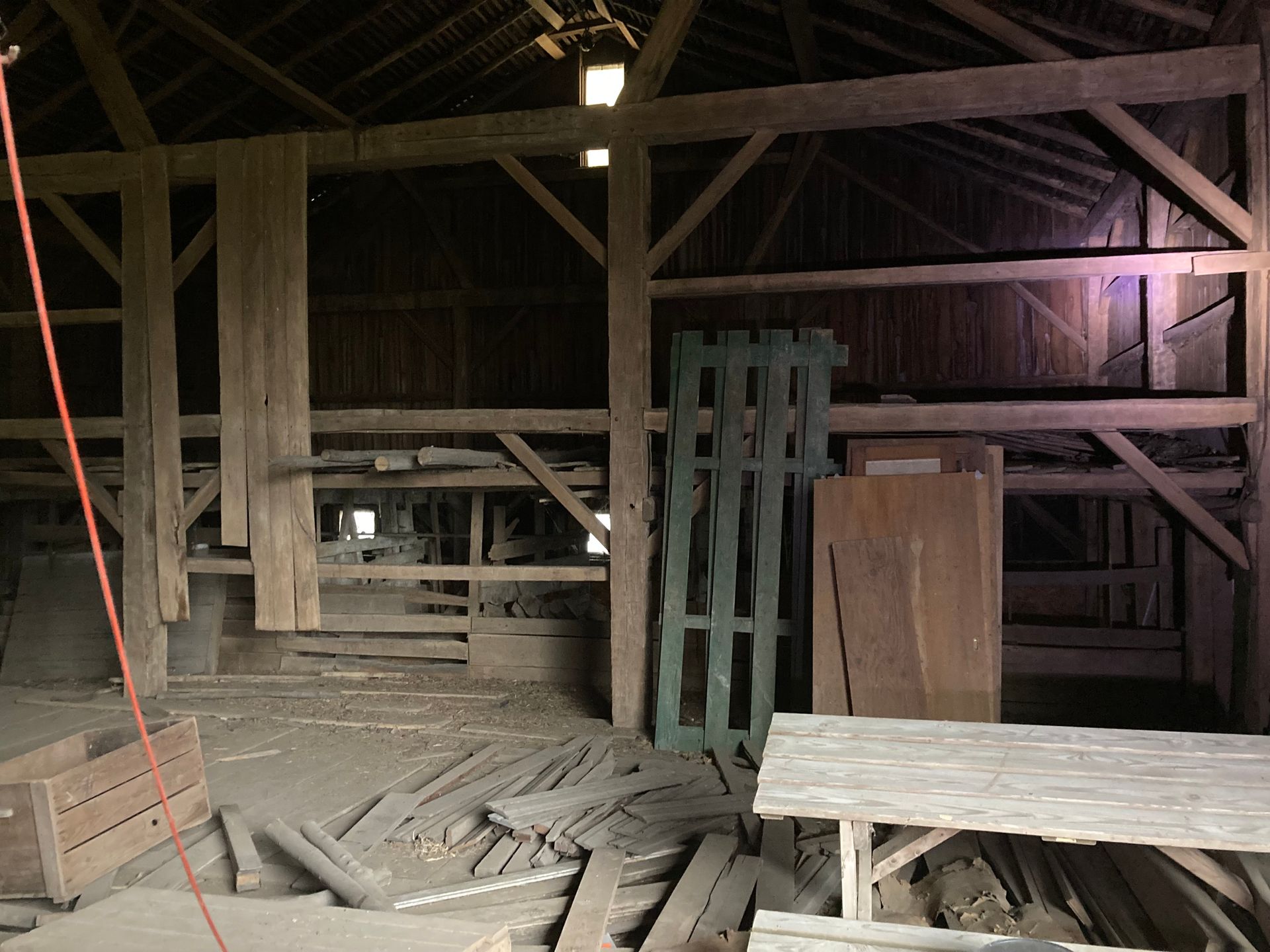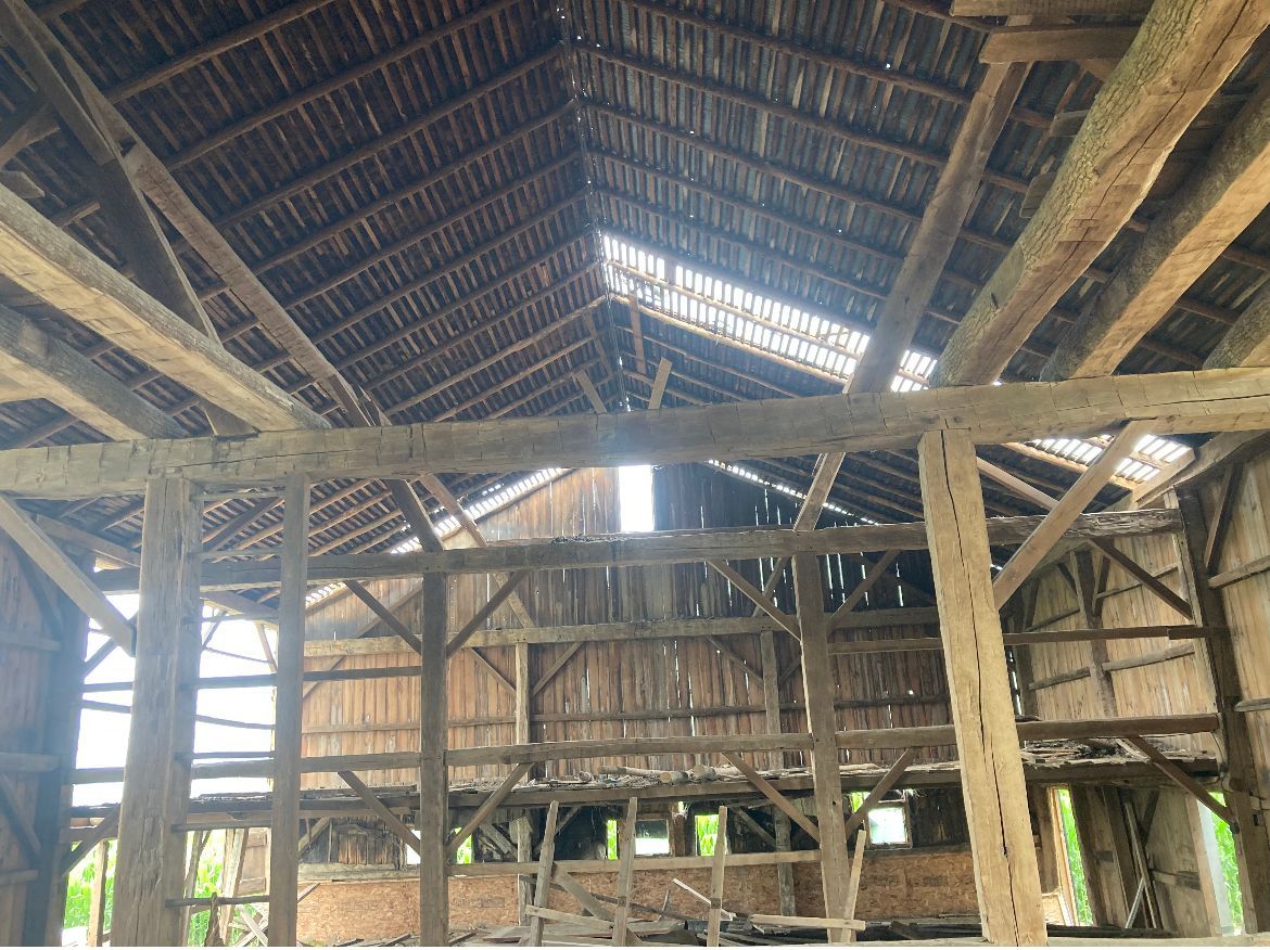 This gable-frame barn is a substantial two-story barn and a classic example of a traditional timber frame. The antique wood has stunning markings and unique structural details of its original craftsmen. With an imposing 40x80-foot footprint, it is an incredible architectural opportunity for a commercial barn restoration and re-erection project.